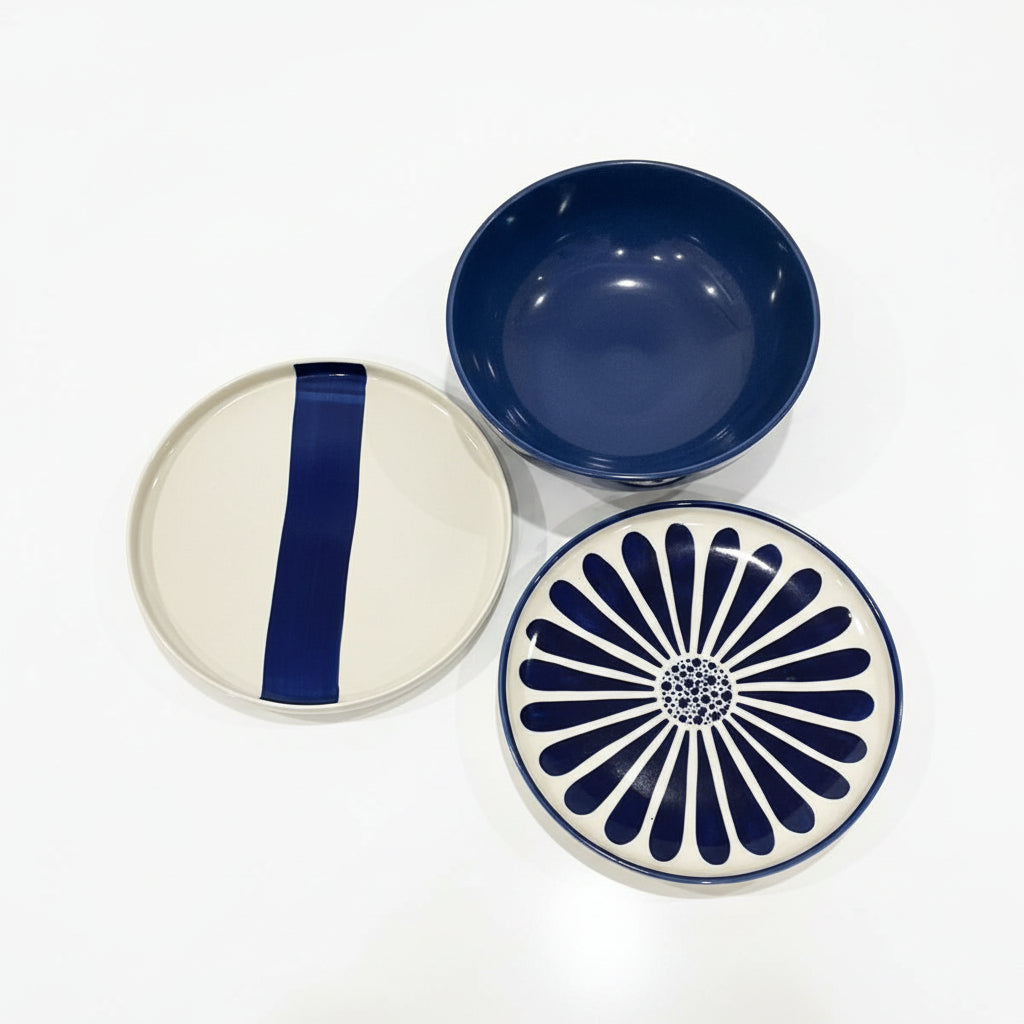 Description: The Blue Royale Bundle is a curated trio of handcrafted ceramics and marble designed to elevate your table and living spaces with timeless elegance. Featuring two statement ceramic platters accented with rich cobalt-blue detailing and a sleek blue marble bowl, this bundle brings together artistry, texture, and refined craftsmanship. Perfect for hosting, styling, or gifting, each piece balances bold design with classic appeal, creating a cohesive blue-and-white story that complements both modern and traditional interiors. Thoughtfully crafted and visually striking, the Blue Royale Bundle adds a sophisticated, royal touch to any setting.