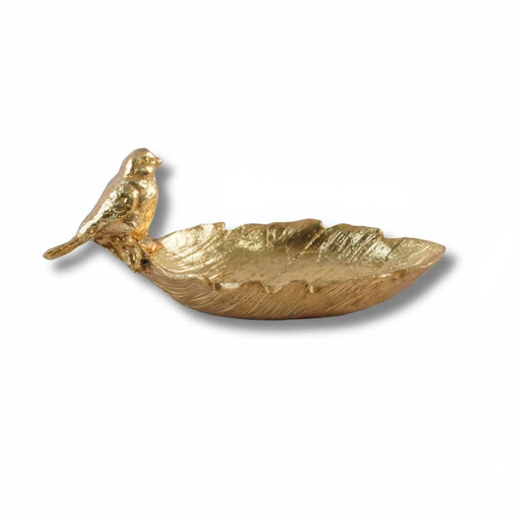 Our elegant Finch Leaf Tray is celebrated for its artistic design and versatile appeal. Crafted from high-quality resin, this tray features a delicate finch perched gracefully on a textured leaf, bringing a touch of nature-inspired beauty into your space. Available in two finishes—luxurious gold or striking black & gold—it offers a refined accent that complements both modern and classic interiors. Perfect for holding rings, earrings, or other small treasures, the Finch Leaf Tray blends practicality with timeless charm, making it a stylish essential for any home.