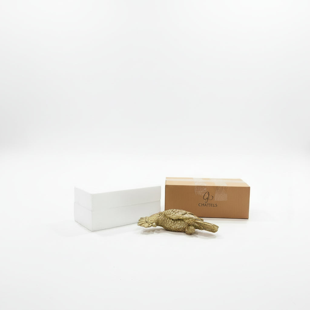 Elegant Parrot Wall Ornament, a stunning decorative piece designed to enhance any wall with its unique charm. Crafted in a dull gold antique finish, this ornament adds a distinctive touch to your space.