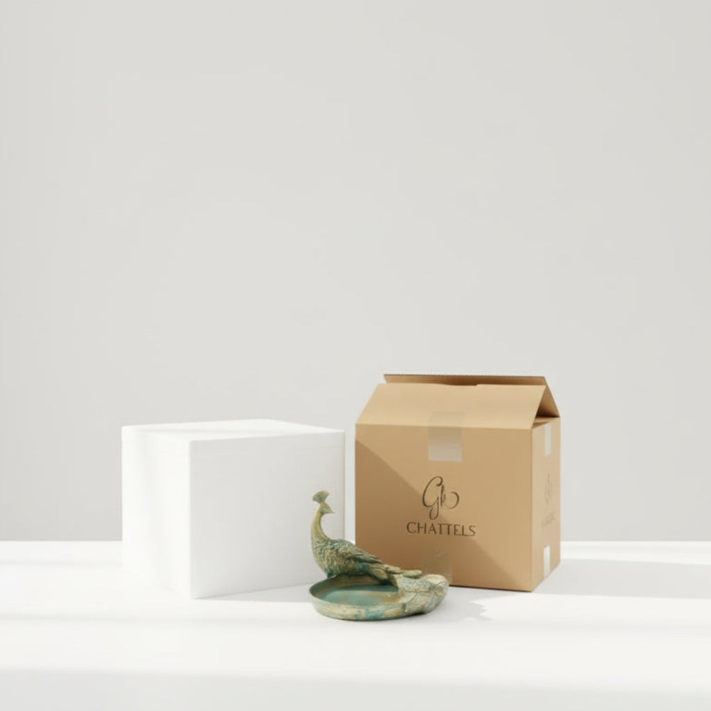 The Jade Peacock Jewelry Tray is a versatile and functional small platter designed to enhance your space with elegance. Crafted in a jade green and gold antique finish, it features a peacock figure, symbolizing grace and beauty. This tray serves multiple purposes, including organizing rings or small items, while also allowing for customized functionality based on individual needs.