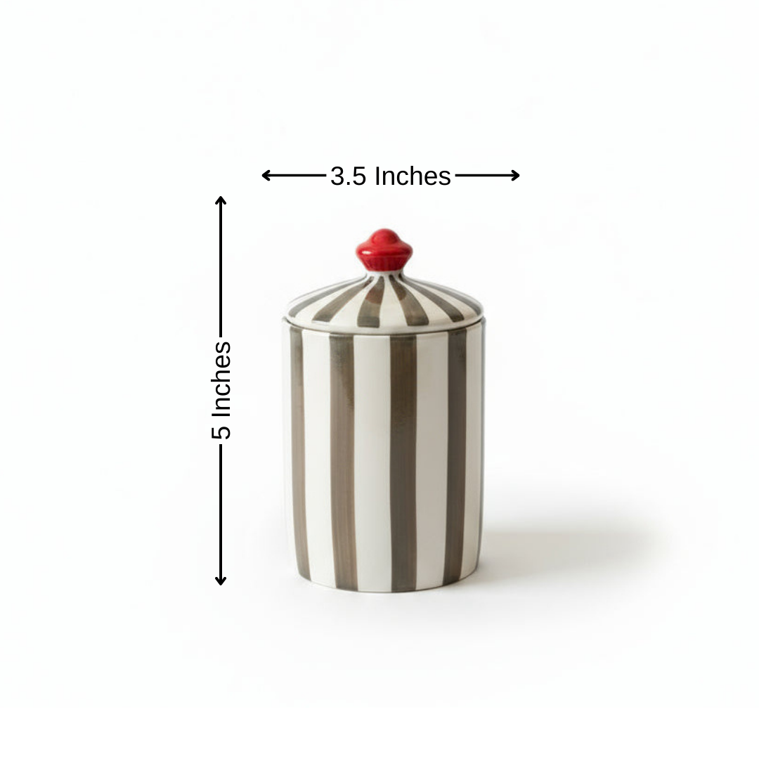 The Tuscan Stripe Jar captures the rustic warmth and timeless elegance of the Tuscan countryside. Handcrafted in classic ceramic with soft green stripes and a rich red knob, it evokes sun-drenched hillsides, olive groves, and terracotta rooftops. Perfect for holding small essentials or as a refined decorative accent, this piece brings an earthy yet sophisticated charm to your space.
